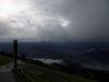důvod: někde 600–800 m výškových jsem nechal na cestičce ležet ve tmě a mokré trávě foťák, bylo mi ho líto (peněz), tak jsem si dal chodeckou vložku tam a zpět. Místní ho ráno našli a v poledne mi ho předali i s obědem :). Po návratu ke kolu a asfaltu začlo lejt. Stálá a trvalá námaha nedělá dobře mým kyčlím, takže jsem si stoupání na Klausenpass ,,užil" málem v slzách. Následující sjezd – strašná zima, voda zeshora, zezdola, v těch zatáčkách nebyli motorkáři rychlejší. Na 6 km nám dali cca 500 m :). Podchlazení se projevilo na úsudku, skončili jsme v jiném Mattu, ubytování B+B, snídaně bohatá.