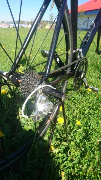 Po zkušenosti se starým kostitřasem jsem si řekl, že si na silnici musím postavit něco lepšího. Rám jsem sehnal levně a byl žlutý tak jsem ho nastříkal na černou metlu, protože žlutou bych nesnesl. Musel jsem na něm upravovat šl. střed, kde jsem si nechal udělat 0,2 mm vložku do středů, protože díra byla větší o 4 desetinky než ložisko bb30 a nejspíš proto byl tak levný. No a zbytek je co dům dal a co se poschánělo, asi největší radost mi udělala sada od campy a kola. Jezdí se na něm o poznání lépe než na starém.A samolepky už jsem konečně vyřešil a myslím že se povedlo. :-)