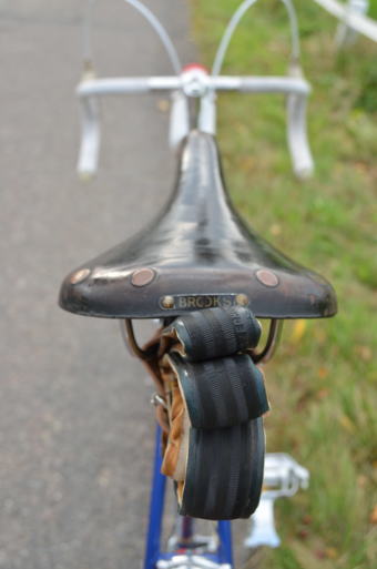 Leské chromy, přesné linky, kvalitní lak, správné polepy, patinové sedlo, bavlněná omotávka.. vše vypadá dokonale. Parádní práce! Čeho si ale vážím obecně, nejvíc a co obdivuji, bez ohledu na to, zda je to kolo, auto, či cokoli jiného? Probudivších se zlatých českých rukou, dovedností, oprášení nápadů, vtipných řešení, i skvělého československého designu.