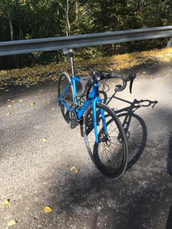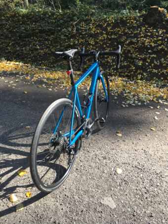 Modrý blesk na kotoučích. Po sjetí vyměním pláště za užší, asi 25 mm.