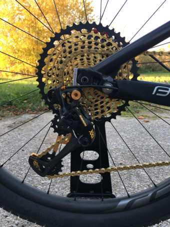 To mi připomnělo zlatou lx shimano sadu v dávných dobách. Brrrr. Dejte se zlatou pokoj. Ale dávejte si na kolo co chcete. Stejně to bude vod bahna.