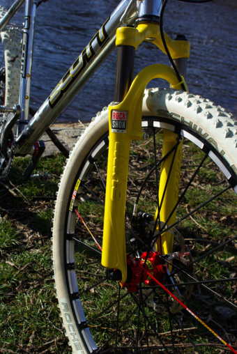 Kliky nejsou tak tmave jak na fotce vypadaji. Zkousel jsem nasadit stare RF Next LP ve zlute barve, aby bylo to jak pekt na oko :) mozna casem na ne nakonec dojde, ale az sezenu poradne prevodniky za normalni cenu. K brzdam…no je mi jasne ze tu nejsou oblibenci Avidu :D , ale me jejich krok vyhovuje a bohzel Marty mi vubec nesedi…ale zase naopak jejich stare kotouce miluju…bohuzel mam doma dva, ale jeden je dost krivej, tak shanim 160mm a az bude, tak je nasadim.