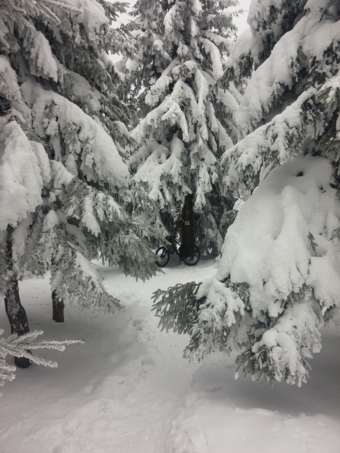 Taky jsem myslel že to bude horší. „Hodně“ tlačení a nošení, ale za ten sjezd to stálo. Původně jsem chtěl jet po magistrále, ale dobře že jsem se na to vybodl. Podklad se bořil, běžkaři by brblali a pod Malým Travným už byla jen stopa na klasiku.