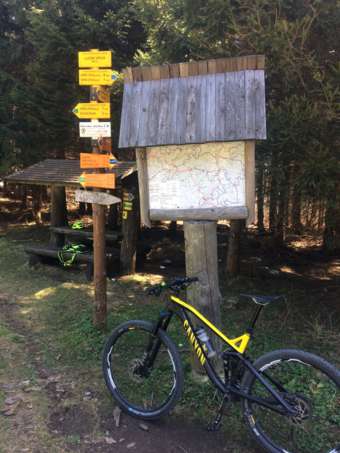 Charakteristický devítiposchoďový rozcestník a přístřešek = Smrk, hraničník, Rychlebky :-).