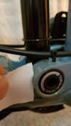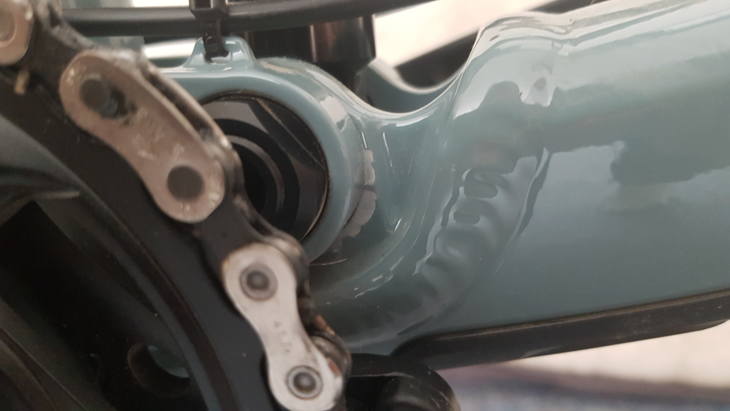 Tak uz to resim a i dnes (za coz jsem rad protoze je svatek) mi bylo napsano, ze je to ojedinely pripad ktery se stava a to z duvodu vrstveni barvy a laku z vyroby (velka vrstva). Tato vada se projevi az kdyz kolo projedete a vahadlo zacne vice pracovat. V kazdem pripade na druhe strane tam taky nedam ani papir, takze očekávám, ze kdybych kolo jezdil a loziska „trosku povoli“ uleti dalsi kousky a s tim se nechci smirit.