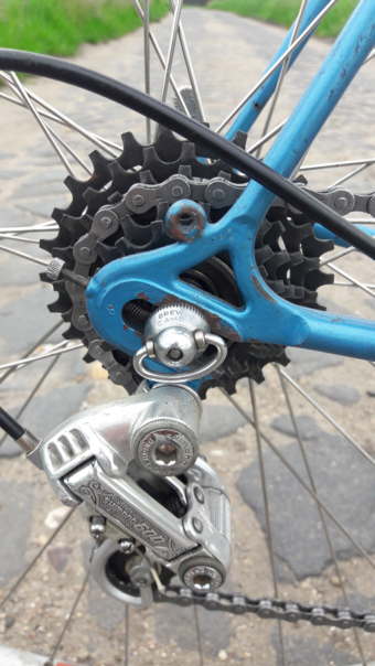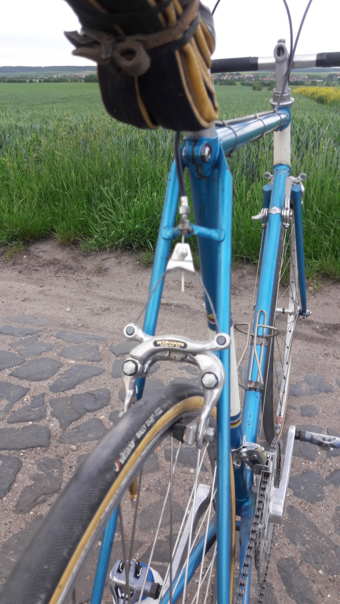 Pilane, no kdyz srovnam siluetu s „Cilem z '55“: http://speedbicycles.ch/…de_1955.html tak mi to jine neprijde. Zadi stavba je predelavana urcite, je to videt na te fotce prevodniku. A hlavko co tam bylo taky odpovida 50./60. letum. Jinak na tom pak byly nejake dily ze 70tek (smyk a naby Shimano, tyhle kliky).
