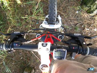 Původně tam byl předtavec 130mm, 80kou jsem to asi kapku přehnal, ale budiž. Chtěl jsem trochu zlepšit ovladatelnost. Ale i tak se kolikrát chytim až konců těch velikánských rohů… Až praskne v nějakym sjezdu, tak koupim menší