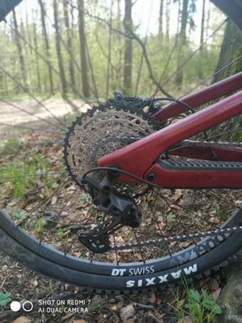 Prvni tři slova mě rozesmutnily, ale jinak kolo je pěkné. Stran plášťů, na okolobrno se mi docela osvědčila kombinace DHR II vepředu a Rekon vzadu. Jede to dobře a co potřebuju, tak se svýma 95kg tím DHRkem ubrzdím. Jen musím brzdit včas, před náklonem. Zadek je trochu párty, ale to ničemu nevadí.