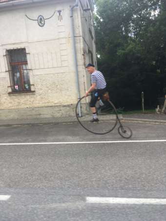 Včera jsem se ze Všeně na Žďár připojil k tomuhle borcovi. Příjemně jsme pokecaly. Pán je dvacet let v důchodu a sedět doma ho nebaví. Na tomhle stroji najede dva až tři tisíce ročně. Několikrát na tom vyjel i Ještěd. Nadšení z jízdy a ze života z něho jen sálalo. Ukázal mi jak slejzá, nastupuje, brzdí a pár dalších triků. Moc příjemné setkání a velká motivace. Ztělesnění hesla ,,neřešit, jezdit"