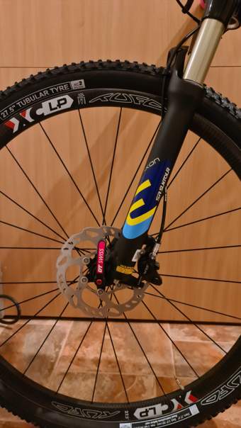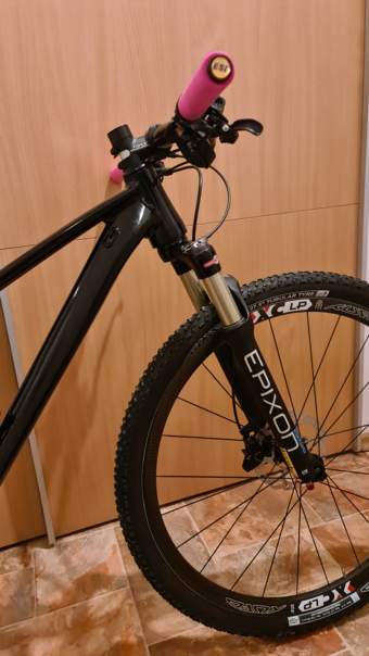 Jelikož odrůstáme z RB KIDS, bylo potřeba vymyslet, co nového. Nakonec padla volba na ULTRASONIC vel. 14 – 27.5. I když se authoru barva rámu docela povedla, Ella si přála černou lesklou a k ní nějaký růžový doplněk. Bylo rozhodnuto. Nástřik a opískování vyšlo na cca 850 kaček. Kolo je skoro hotové, jen přijdou jiné pedály (ty, co jsou v popisku) jiná sedlovka (čekám na zásilku). Sedlo je carbon Čína, zdálo se nám po hranách docela ostré, proto na bužírka. Pokud nebude vyhovovat, půjde zpět sedlo ORBEA dětské. Krytky na kliky jsou taky na cestě. Vidlici snížen zdvih na 80 mm a chodí parádně. Původně měla být čínská karbonka, ale Číňan poslal na jinou adresu a tak vráceny peníze. Objednáno znovu a čekáme…váha se snad docela povedla. Ještě něco půjde srazit…ale i tak good…