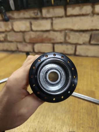 Uvnitř pěkně široký ráčnový kroužek velkého průměru o 90 zubech, menší šance na strhnutí v těle náboje! :-)