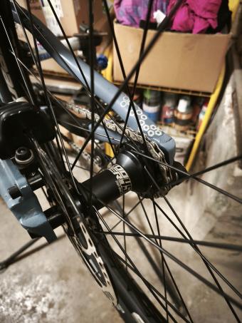 Přivařen IS disc mount - napleteno totál jude zadní kolo - náboj Tanke Single Speed, dráty a niple co byly doma. Navářka neseděla výškově, tak se musel brousit samotný adaptér.