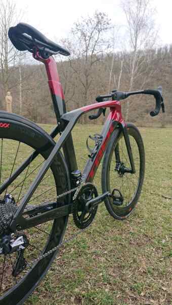Rok se s rokem sešel a tak obměna. Vzal jsem o číslo menší rám a s radostí změnil Sram opět za Shimano Di2. Je to o čtvrt kila lehčí než předchozí verze carbonu 700. Toto má navíc střed T47 a jdou tam osadit kliky s 30mm osou. To jsem také udělal, protože Ultegry mi okometricky docela vadí. Volba padla na Praxis. Ty kliky se mi hodně líbí a vychází dobře i v oblasti tuhosti. Také jsem vyměnil 160mm kotouče Ultegra za 140mm kotouče Dura Ace. Designově je to o parník dál a ty menší pohodlně na silnici postačují. Kola XXX6 jsem už měl a tak nebylo o čem přemýšlet. Kazetu jsem tedy kupovat nechtěl a nechápu, proč dávají na Aero kolo rozsah 11–30. To bych fakt nedal a tak jsem musel koupit Duru 11–28, protože Ultegra (naštěstí) nebyla skladem:) Mě se totiž ty komponenty Dura Ace velmi líbí. Včera postaveno, těšeno na první švih a samozřejmě chčije :)