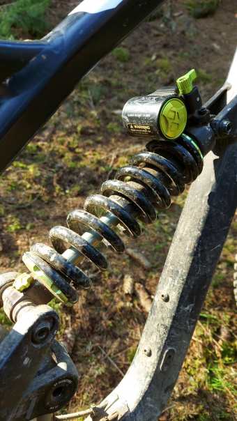v2.1: Změny dosti zásadní mě v terénu dovolily další posun o slušný kus dál, což na světlo brzy vyplavilo nové dosud skryté slabiny – odpružení, v delších enduroidně rozdrbaných sjezdech mě zkrátka hořely nohy a ruce, hlavně chodidla. Po krátkém váhání jsem se v létě rozhoupal k výměně původního vzduchového „xc“ tlumiče za kus poctivého železa a změny jsem nelitoval ani vteřinu, počáteční citlivost a aktivita splnila mnohem víc než jsem čekal, pružina do každé rodiny, pružina na Hrad! Spolu s tím proběhla druhá výměna ložisek, levný noname nahradilo 11 kousků z řady Enduro MAX BO. Brzy se ukázalo, že nastavitelná Sprindex pružina končící 430lbs tuhostí je na mě přeci jen trochu měkká a tak jsem ji nahradil macatou 450lbs klasikou.