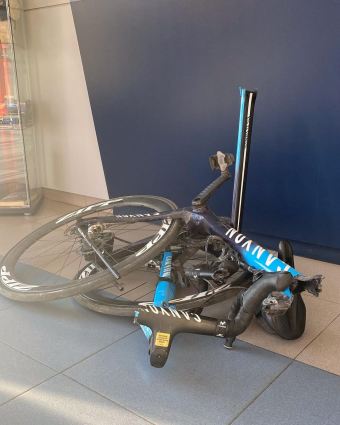 Imogen Cotter a jeji kolo po čelním střetu s protijedoucím autem, kdy předjíždělo jinýho cyklistu.. zlomená čéška a zápěstí.. dost štěstíčka teda