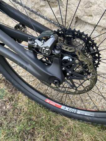 Moc pěkný. Ta sedlovka hlouběji nejde, nebo proč snížení na 190? Jak se to chová pod zadní brzdou? Noří se to moc? Díval jsem se, že Vojta Bláha zkoušel plovoucí zadní třmen, který to omezuje.