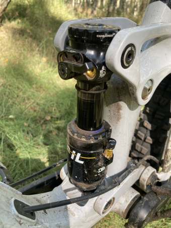 A jak jsem s kolem spokojenej? Nadmíru. Na moje použítí a traily pecka. DH už dávno nejezdím (ani skills ani potřeba). Delší přejezdy se na tom i přes tlustý gumy jezdit taky dají. Dětska na sedačce to taky odveze. Ba dokonce mě překvapilo, že když jsem kolo po zimě prvně vytáhl, jelo se mi se zamčeným tlumákem do místního kopce pocitově líp než na HT. Těžko říct, jestli to bylo lepším posezem, nebo natěšením z nového fulla, ale prostě jsem na kopec přijel rozhodně né víc servanej než na Metě. A to bych býval nevěřil. Cane Creek se nedá úplně zamknout (oproti základnímu tlumiči od Foxe co byl na kole v základu), ale dá se nastavit díky modu Climb a nastavení nízkorychlostní komprese tak, že se do kopce taky nehoupe. Tkž good. A z kopce pecka. Dalo práci si ho správně nastavit, ale když se povedlo, tak jsem na trailu dost výrazně pocitově i fakticky zrychlil, ve srovnání s původním Foxem. Kolo je prostě bomba. Maestro funguje na jedničku. Jednou jsem zkusil i prohodit flip chip na low, kdy je pak úhel hlavy 63,8, ale to mi na moje lokální traily nějak nesedlo, jelikož mi kolo přišlo takový líný. Věřím, že v bikeparku, kde se to pálí na rovinkách a jsou tam dlouhý klopny, to bude fungovat na výbornou a mít smysl, ale pro mé „dennodenní“ využití kolem baráku je jednoznačně lepší režim high s úhlem 64,5, vyšším středem a hravostí. Tkž za mě kolo dobrý. Nelituju ani low cost konceptu, ani 27,5 koles a pro moje lokální traily a případné bikeparky či trailové lokality mám plně dostačující a skvěle fungující kolo
