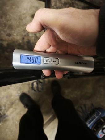 Leden 2026 - Aktuální váha sakum prdum po servise, nové pláště, mlíko, sedlo, desky. Nějakej komponent šel váhově dolů, nějakej nahoru, celkově jsem na tom samým.:-D