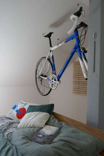 Petr Ch: co je na tom tak špekovatého? Prostě bicykl, který plní funkci designového doplňku v bytě. Lidi si doma pověsí horší věci. A jinak to risknu, už druhá noc a pořád žiju :-) Co na to mí bližní? Je jim to úplně jedno :-))