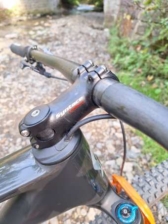 Vaha jak je na fotce 9kg. V planu je prechod na novou FOX SC 34 120mm s Grip SL tlumenim. To udela cca –1° (67,3->66,3°) a –60g. Pokud se objevi nabidka na Trickstuff brzdy, tak mozna budou Piccola Carbon.