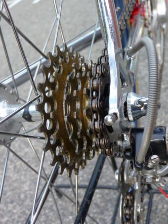 Ano, i mě zaujaly mě ty zadní chromované šavle. To je opravdu parádní. A pak samozřejmě ráfky Mavic Service Des Courses. Nikdo přesně neví co se stalo, ale ve své době na tomto modelu jelo 80% pelotonu. To už se asi nikdy nezopakuje.