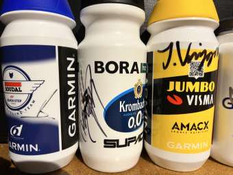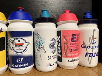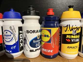 Při úklidu na mě vypadlo pár podepsaných bidonů na památku profi závoďáků. Do dílny jako dekorace budou fajn.
