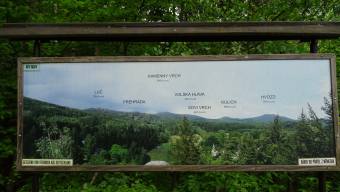 Cca 500 m od skalních útvarů po pěkné pěšince méně hezká vyhlídka.