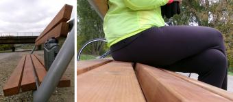 Na nové cyklostezce kolem Jihlavy od Železňáku do Kounic jsou nainstalované nové lavičky. Dobře se mi na tom nesedělo, horní profil sedáku a jeho umístění vůči opěradlu se opravdu nepovedlo :-(