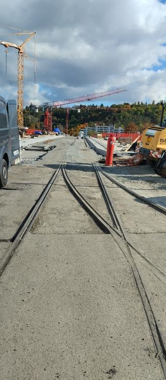 Už se pokládají tramvajové koleje,a bude tam i cyklo pruh.