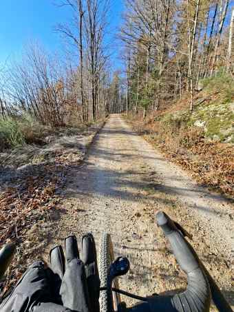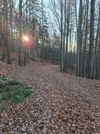 Dole bez sněhu. Teď musím vystoupat z 400 do 1000 mnm.