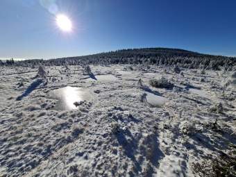 Rezervace Čihadla, a zamrzlá rašelinná jezírka.