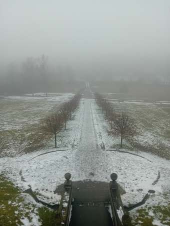 Dostali jsme se s rodinou na prodloužený víkend do Dvora Králové, sic původní termín byl někdy v září, ale i v opravném termínu jsme si to ve Dvoře hezky užili (A to i bez zoo). A na závěr jsem si dopřál právě běh na Kuks. Jednoduchá trasa po červené a žluté TC, cesty mírně kluzké ať už blatem nebo ledem, ale stálo to za to. Jen ta vítězná fotka se nějak nepovedla :-D