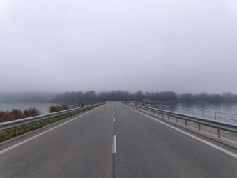 Jáchyme, na Věstonické hrázi jsem byla v jedenáct. Zpátky jsem jela přes Pohořelice, Kounice a Bránice, všude mlha. Akorát u Přibic se objevilo pár paprsků, asi se to od tama směrem k Židlochovicím kolem poledne vyjasnilo.