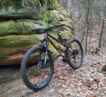 Abych záměr kola podpořil, vzal jsem o fous menší reach, než jsem doteď jezdil.Sedona má vysokej stack, nízkou sedlovou trubku (teleskop mám krásných 240 mm) a krátkou zadní stavbu.Je to vzhledem takovej trochu prcek (tuhle přezdívku u nas doma hned dostal) ale můžu říct, že prcek je s velkým náskokem, to nejschopnějsí kolo co jsem mel.