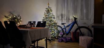 Vzhledem k tomu, že jsem kolo vyzvedával 22.12., napadlo mě dát si ho pod stromek. Kvůli velikosti to byl opravdu boj.